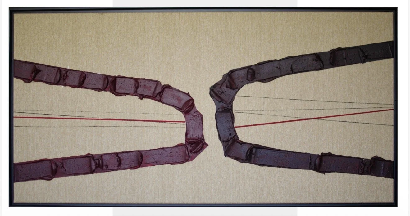 Bodies in suspension. Sculptural reds and reliefs that anchor identity, bond, and presence.