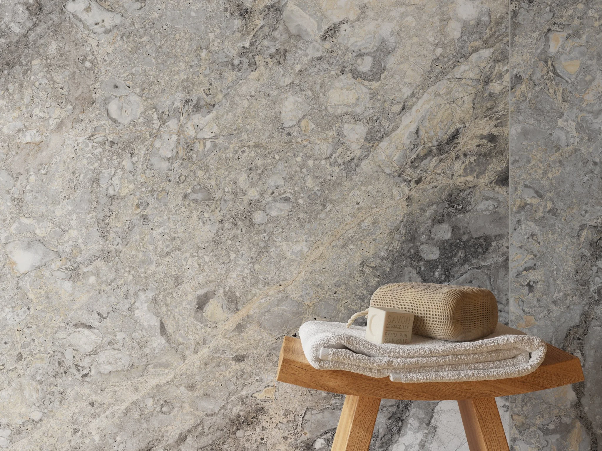 La colección combina tecnología de última generación con una profunda exploración estética, logrando reproducciones de materiales naturales con un nivel de realismo extraordinario. Las vetas, texturas y matices evocan piedras y superficies minerales con una fidelidad que transforma muros y pisos en verdaderos protagonistas del espacio.