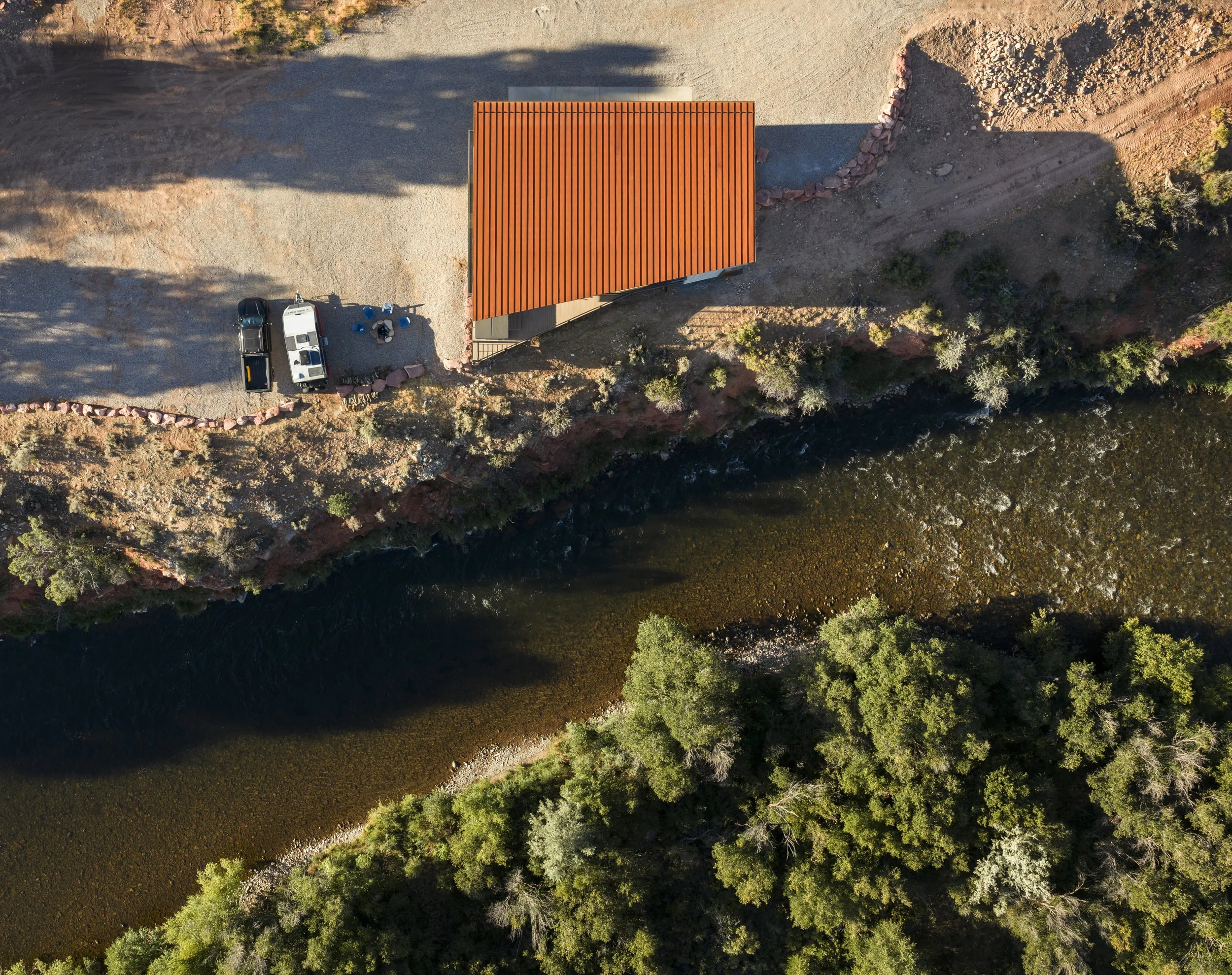 The project sits on a parcel long dismissed as “unbuildable.” Squeezed between a required setback from the access road and a high-water-mark setback from the Roaring Fork River, the allowable building area was essentially erased by overlapping constraints. On paper, there was no room left to build.