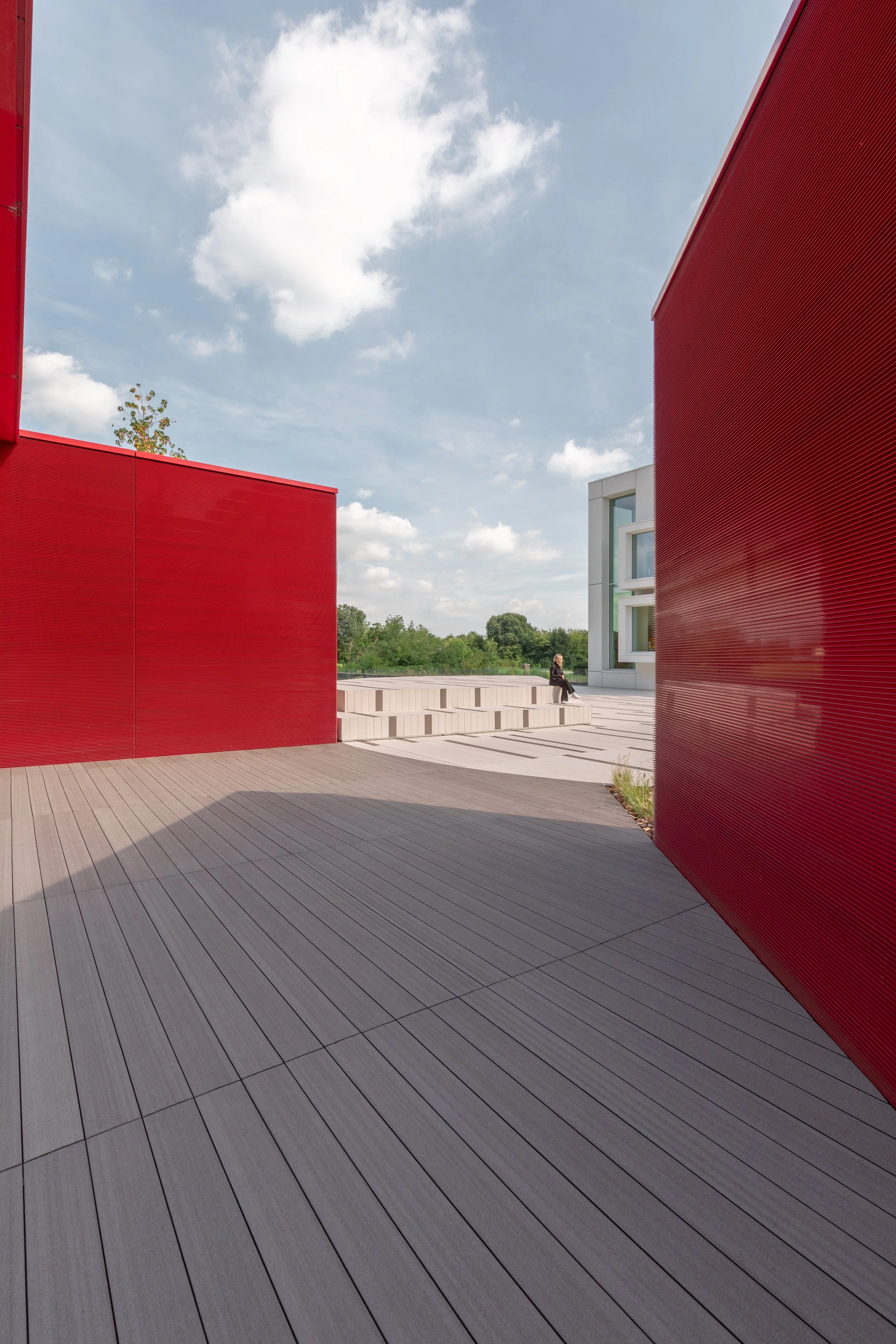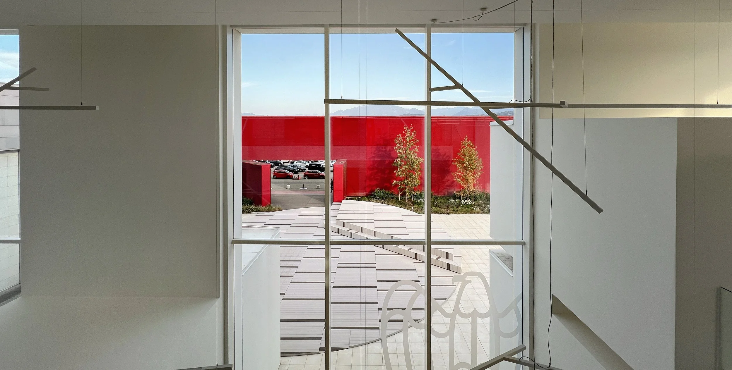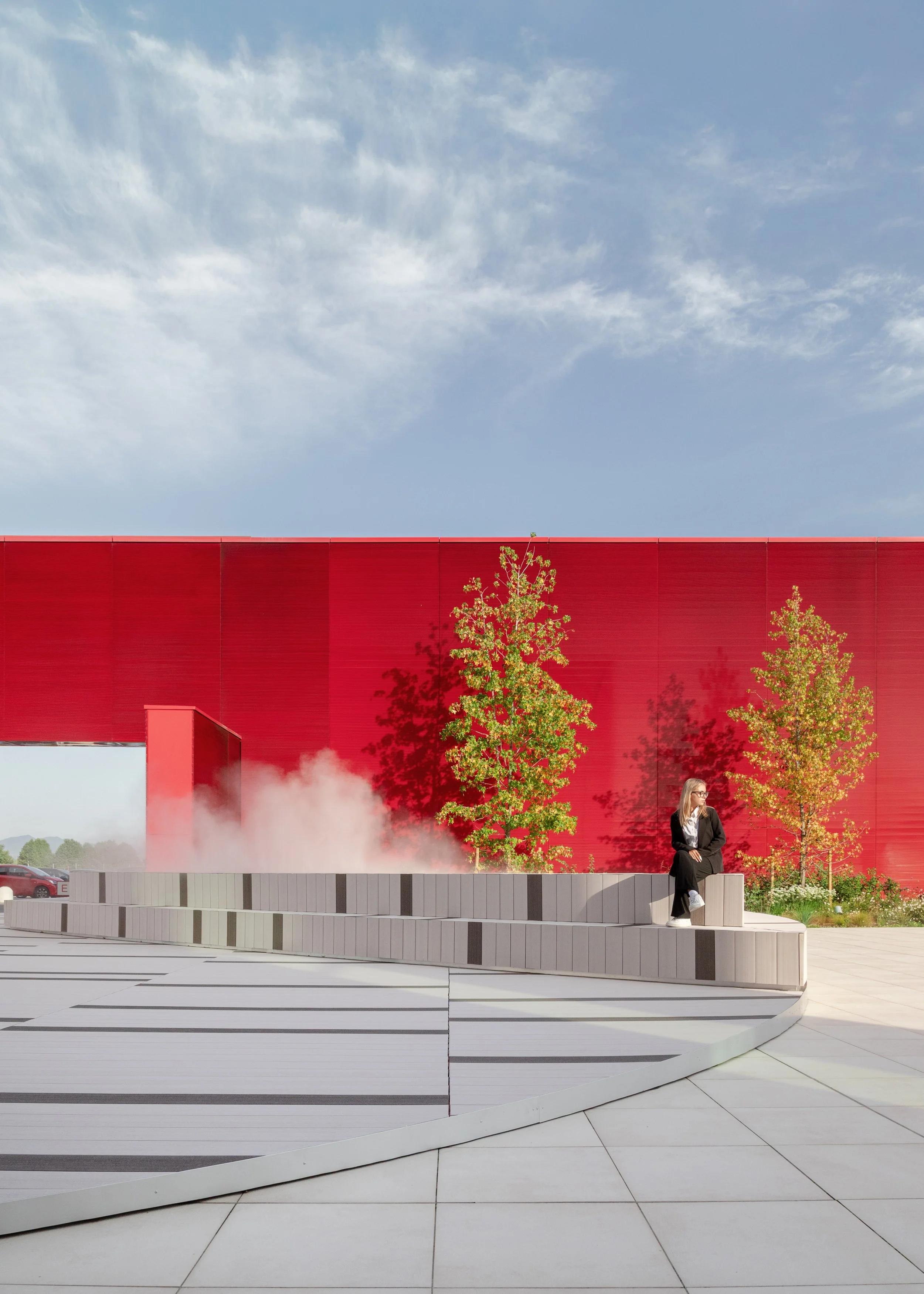 In Stezzano, on the edge of Bergamo, the headquarters of Confindustria Bergamo sits within the Kilometro Rosso innovation campus, between Jean Nouvel’s monumental Red Wall and contemporary office architecture by Riccardo Minelli. For years, the square in front of the building functioned primarily as a transit area - a necessary threshold rather than a destination.