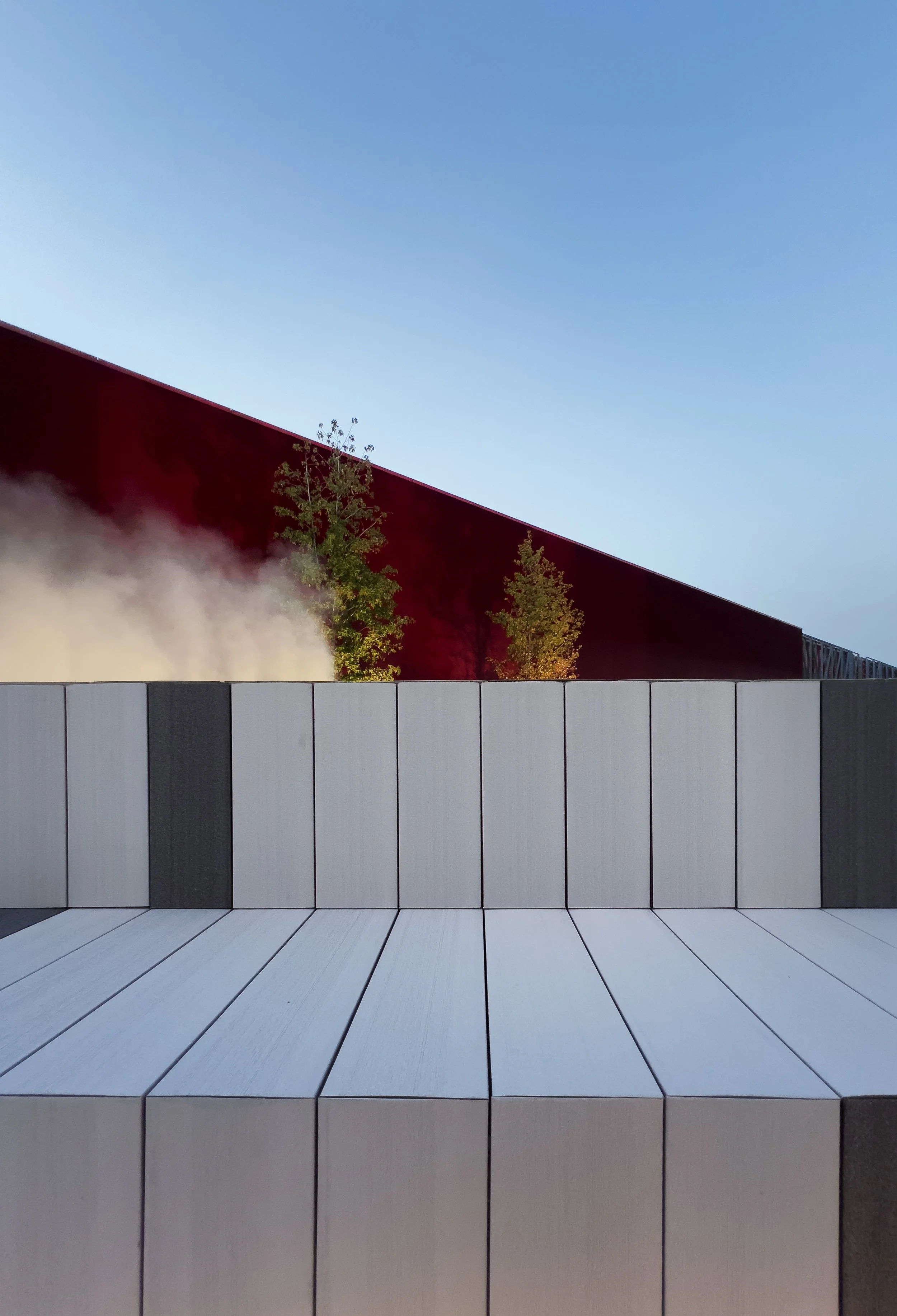 Within a context defined by innovation and productive rhythms, Piazza Confindustria Bergamo introduces a different sense of time - one of relationship and shared identity. The cyclical pulse of the vapour cloud makes the passing of time tangible, while the combination of graphics, landscape and occupation brings a more human dimension back into an otherwise logistical space