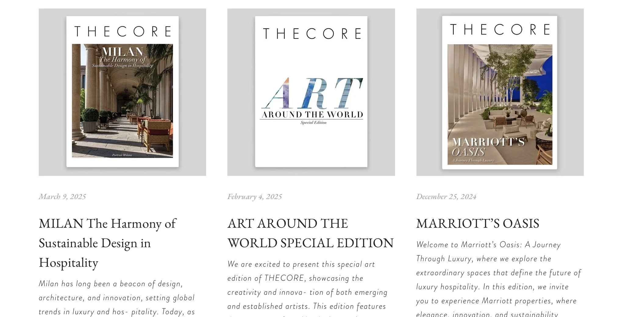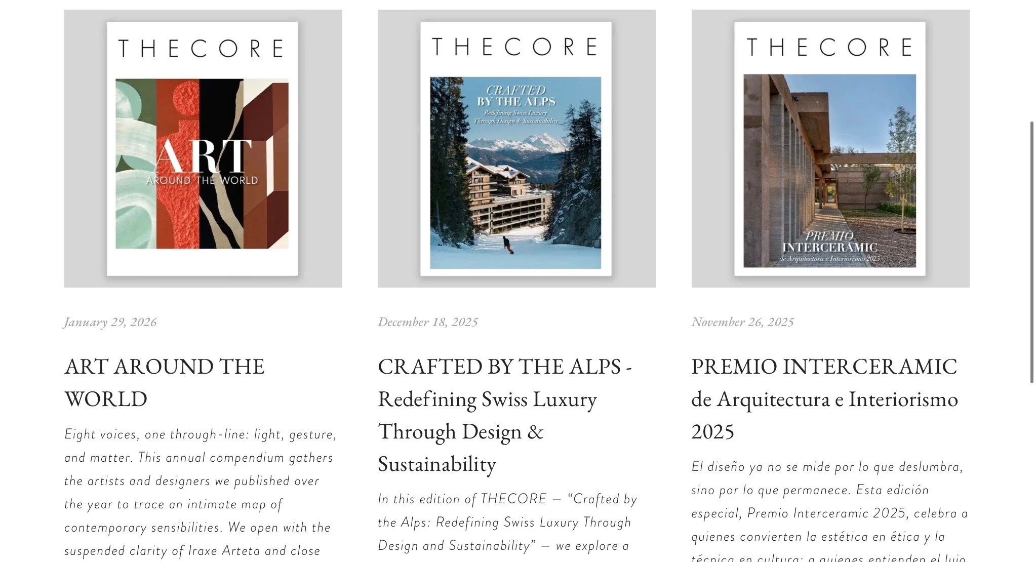 THECORE is a collectible, invitation-only digital editorial platform. Each edition is crafted to be saved, shared, referenced—and to travel far beyond a single campaign. Through long-form narratives, interviews, and visual storytelling, we document projects and ideas that represent the new standard of conscious luxury.